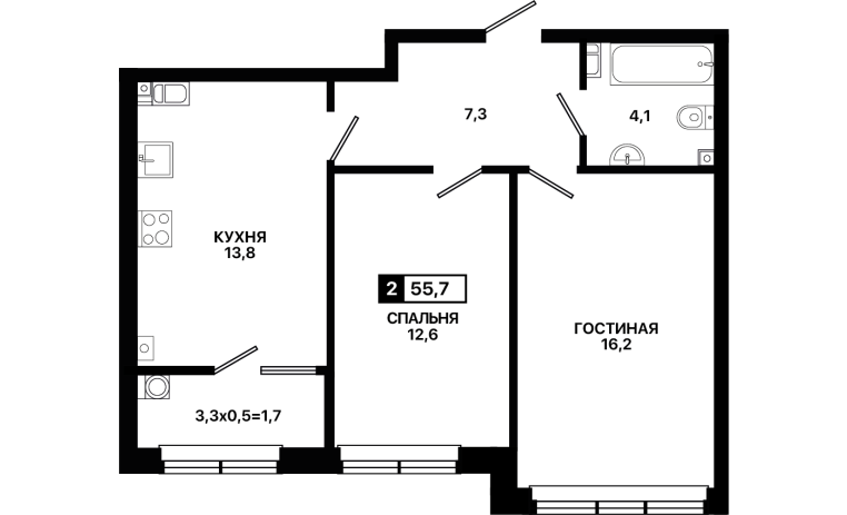 2-комнатная квартира 55,7 м2