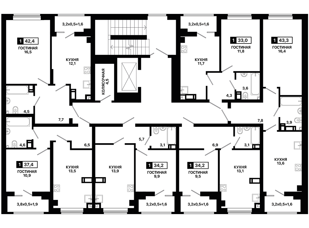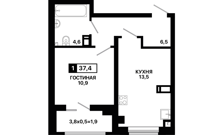 1-комнатная квартира 37,4 м2