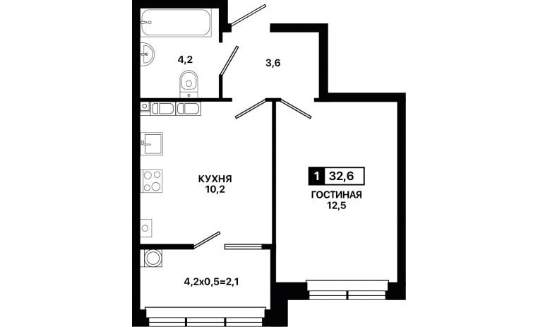 1-комнатная квартира 32,6 м2