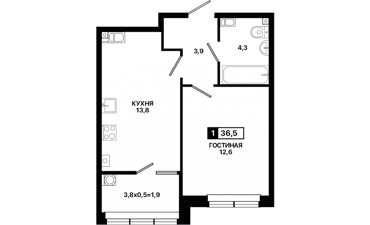 1-комнатная квартира 36,5 м2