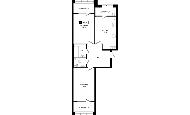 2-комнатная квартира 62,2 м2