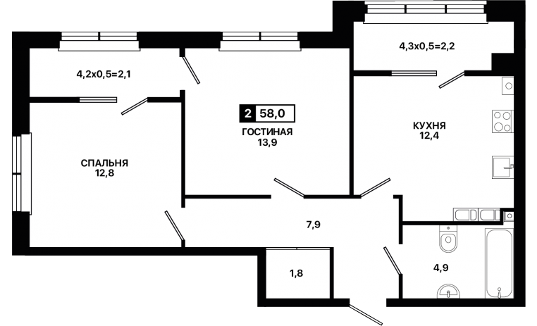2-комнатная квартира 58,0 м2
