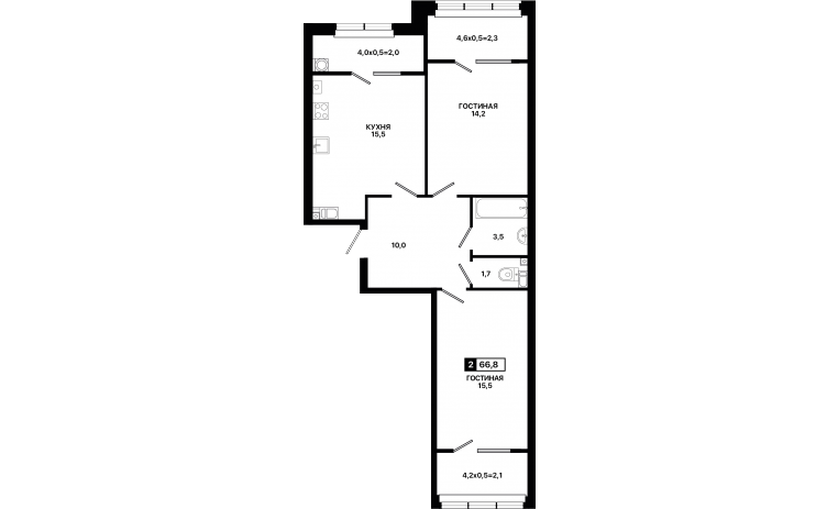 2-комнатная квартира 66,8 м2